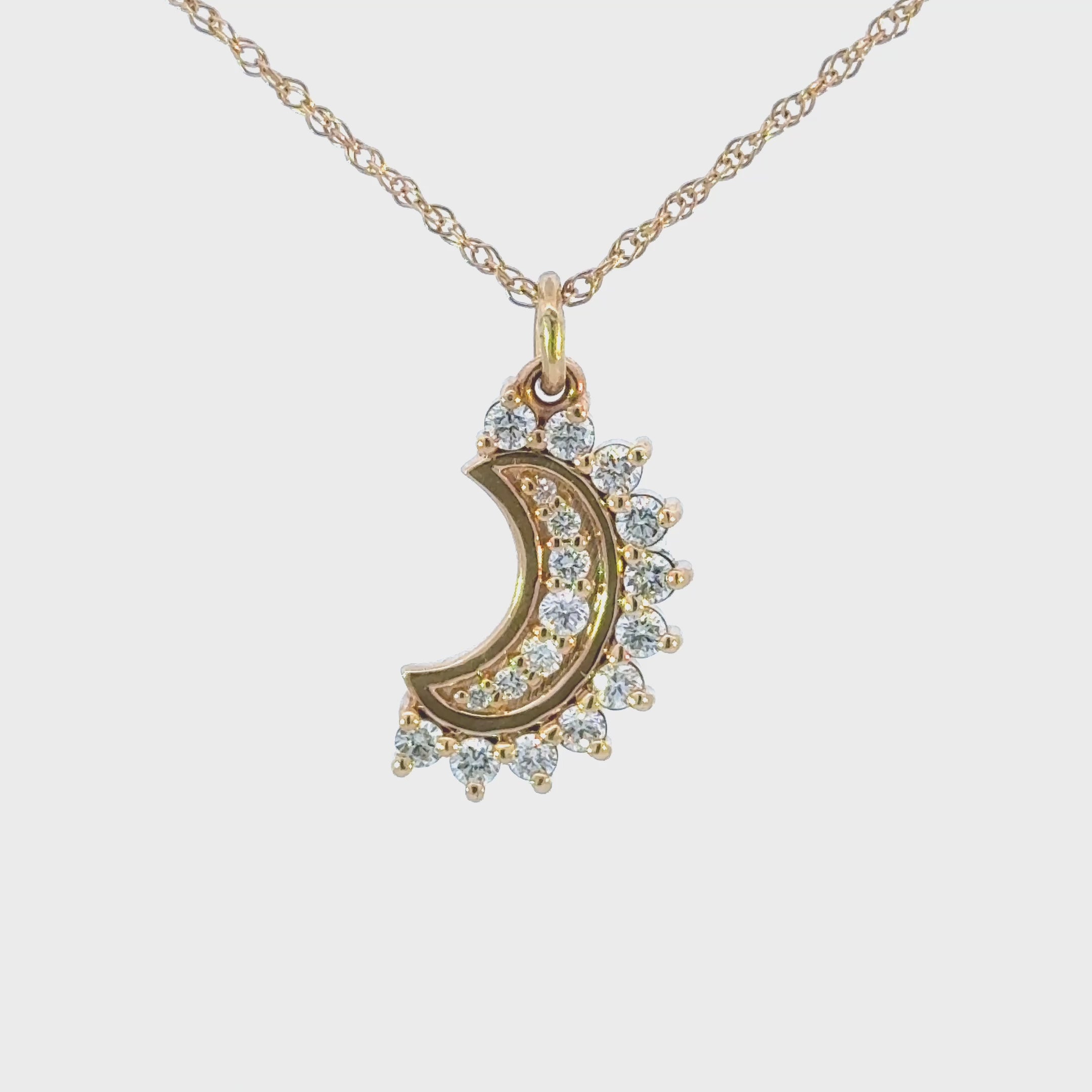 Celestial sparkle meets modern magic-this 14k yellow gold crescent moon pendant glows with lab-grown diamonds. A golden touch of the cosmos, made to shine day or night .59ctw